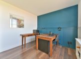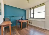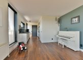 Toegang via een glas paneeldeur tot de royale living met schuifpui naar balkon, voorzien van hordeur, van 12 m2, mogelijkheid realiseren werk-/studeerkamer, zit- en eetkamer met schuifpui naar dakterras.