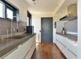 De moderne keuken is voorzien van de volgende inbouwapparatuur: keramische kookplaat, rvs-afzuigschouw, spoelbak met dubbele kraan, vaatwasmachine, koelkast, combi-oven en mooie kastruimtes en ceasar stone aanrechtblad.