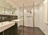 Ook de badkamer straalt luxe en comfort uit, deze is voorzien van een dubbele douche, dubbele wastafel, designradiator, spiegelverwarming en inbouwspots in het plafond.