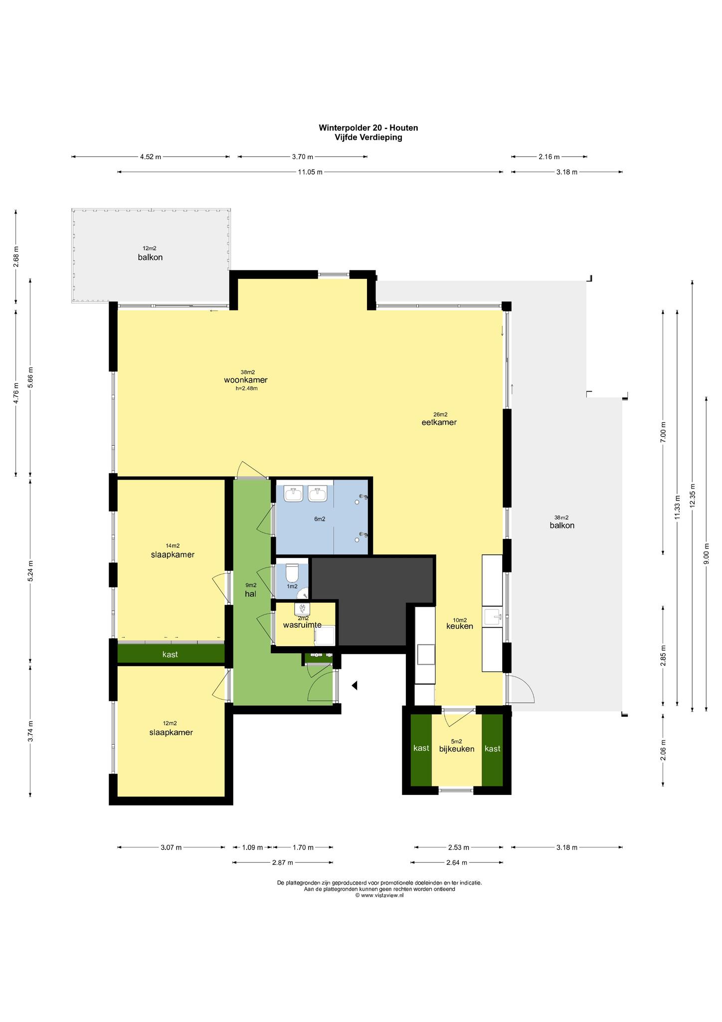 -Extra balkon op het oosten van 12 m2 met uitzicht op park;