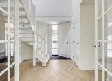 Toegang via dubbele deuren naar de L-vormige woonkamer met aan de voorzijde de zitkamer en de gashaard. Aan de rechterzijde de fraaie woonkeuken met luxe keukenopstelling die is voorzien van de volgende inbouwapparatuur: Quooker, stoomoven, combi-oven, inductiekookplaat met geïntegreerd afzuigsysteem, 2 koel- en vriescombinaties, XL vaatwasmachine met perfectdry functie, veel kastruimte en mogelijkheid tot plaatsen barkrukken aan het 5 meter lang kookeiland. De inbouwapparatuur is van het merk Bosch.