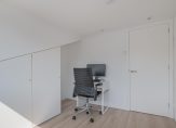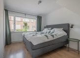 EERSTE VERDIEPING: overloop, slaapkamer aan de voorzijde van de woning van 11 m2 met trapkast, slaapkamer achterzijde van 6 m2 met rolluik. De moderne, geheel betegelde badkamer heeft een natuurlijke lichtinval door een groot raam met mat glas en is voorzien van een ruime inloopdouche, wastafel, wandcloset en inbouwspotjes. Vaste trap naar…