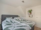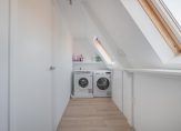 TWEEDE VERDIEPING: voorzolder met tweetal Velux dakramen, bergruimte achter knieschotten, opstelplaats wasapparatuur, goed onderhouden c.v.-ketel (Vaillant 2007), toegang tot de derde slaapkamer van 8 m2 met dakkapel en vaste kastruimte.