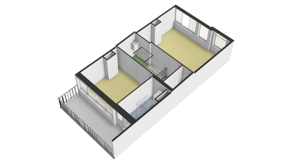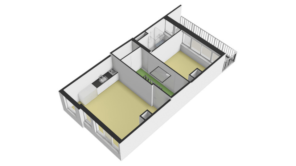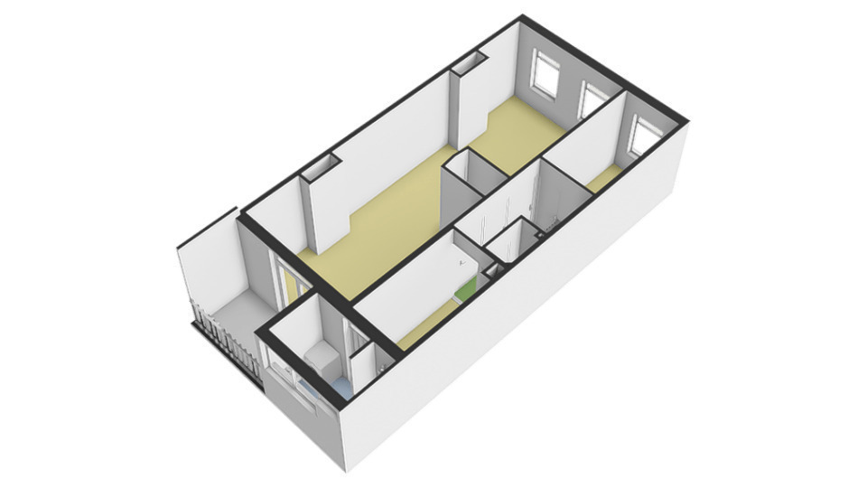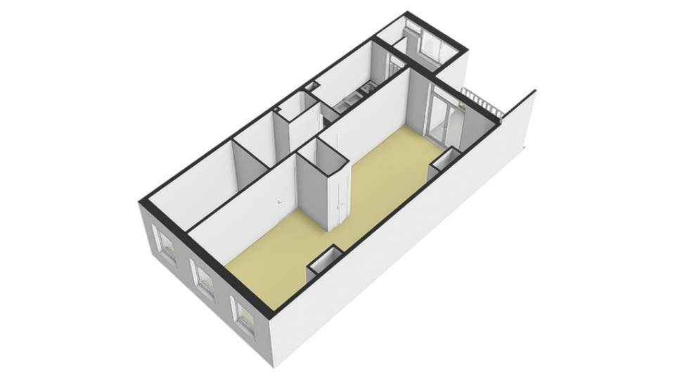 Via de eigen opgang bereik je de eerste verdieping. Vanaf de overloop heb je direct toegang tot de toiletruimte, de slaap- werkkamer van 6 m2 en de keuken met aansluitend een badkamer met opstelplaats voor de wasapparatuur.